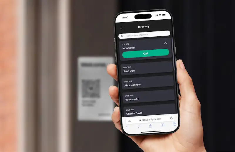 - Scan the ButterflyMX QR Code Intercom with your smartphone’s camera to launch the property directory.