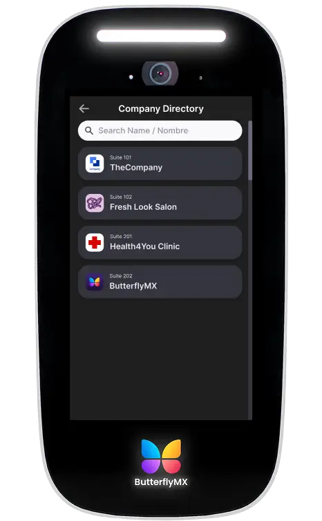 Visitors scan the QR Code Intercom using their smartphone camera, which launches a secure, web-based intercom. They then search the property directory to place a one-way video call. The property’s staff or resident sees who’s requesting access and unlocks the door or gate via the ButterflyMX mobile app.