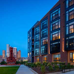 A boutique mid-rise residential community with 200 apartment homes, including six artist live-work-sell units.
